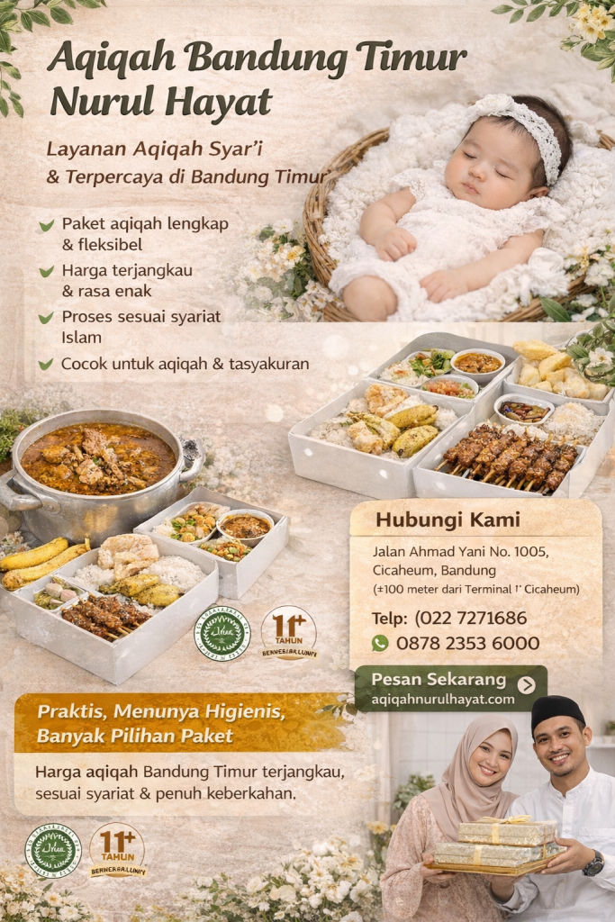 Menunaikan aqiqah untuk buah hati merupakan momen istimewa bagi setiap orang tua. Oleh karena itu, agar ibadah sunnah ini berjalan lancar dan sesuai syariat, memilih layanan aqiqah yang amanah tentu menjadi hal yang sangat penting. Untuk itulah, Aqiqah Bandung Timur Nurul Hayat hadir sebagai solusi aqiqah yang praktis, syar’i, dan terpercaya bagi masyarakat Bandung Timur dan sekitarnya.