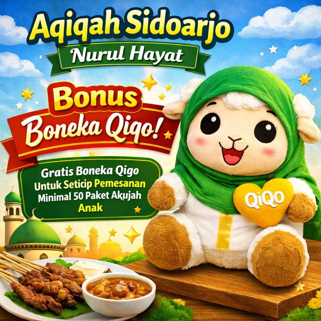 Melaksanakan aqiqah anak kini semakin mudah dan menyenangkan bersama Aqiqah Sidoarjo Nurul Hayat. Tidak hanya menjalankan ibadah aqiqah sesuai syariat Islam, Ayah dan Bunda juga bisa memberikan kado spesial berupa Boneka Qiqo lucu untuk si kecil tercinta.
