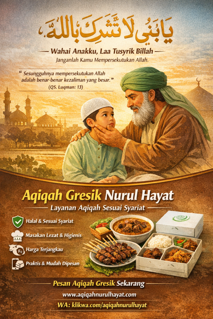 Dalam Islam, aqiqah bukan sekadar tradisi, melainkan ibadah sunnah yang memiliki nilai pendidikan tauhid sejak dini. Sebagaimana nasihat Luqman kepada anaknya: