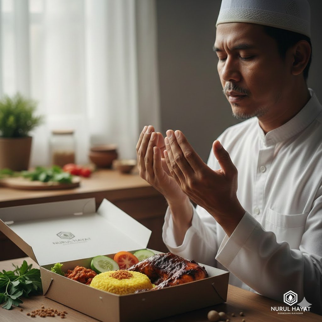“Ya Allah, Tuhan Yang Maha Membuka Pintu Rahmat. Kami memohon kepada-Mu, curahkanlah keberkahan pada setiap paket nasi kotak Nurul Hayat yang kami kirimkan. Jadikanlah setiap suapan yang dinikmati pelanggan menjadi wasilah kesehatan bagi mereka dan pahala jariyah bagi kami.